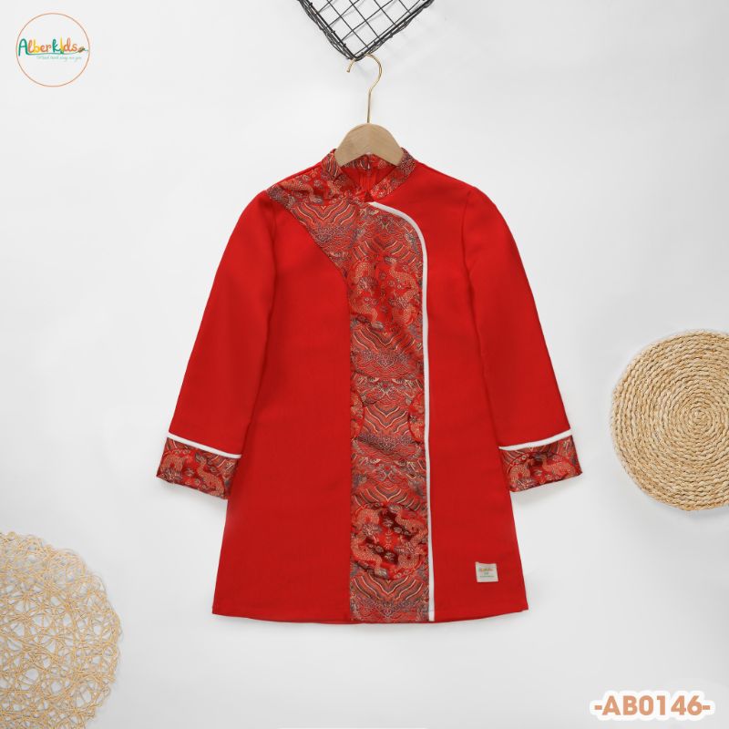 AlberKids - Hành trình cùng con yêu - Áo dài bé trai phối gấm rồng AB0146