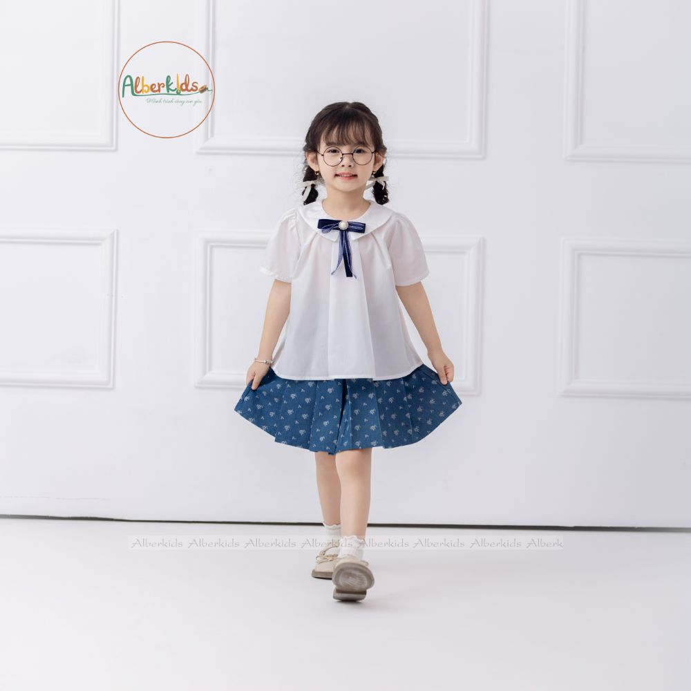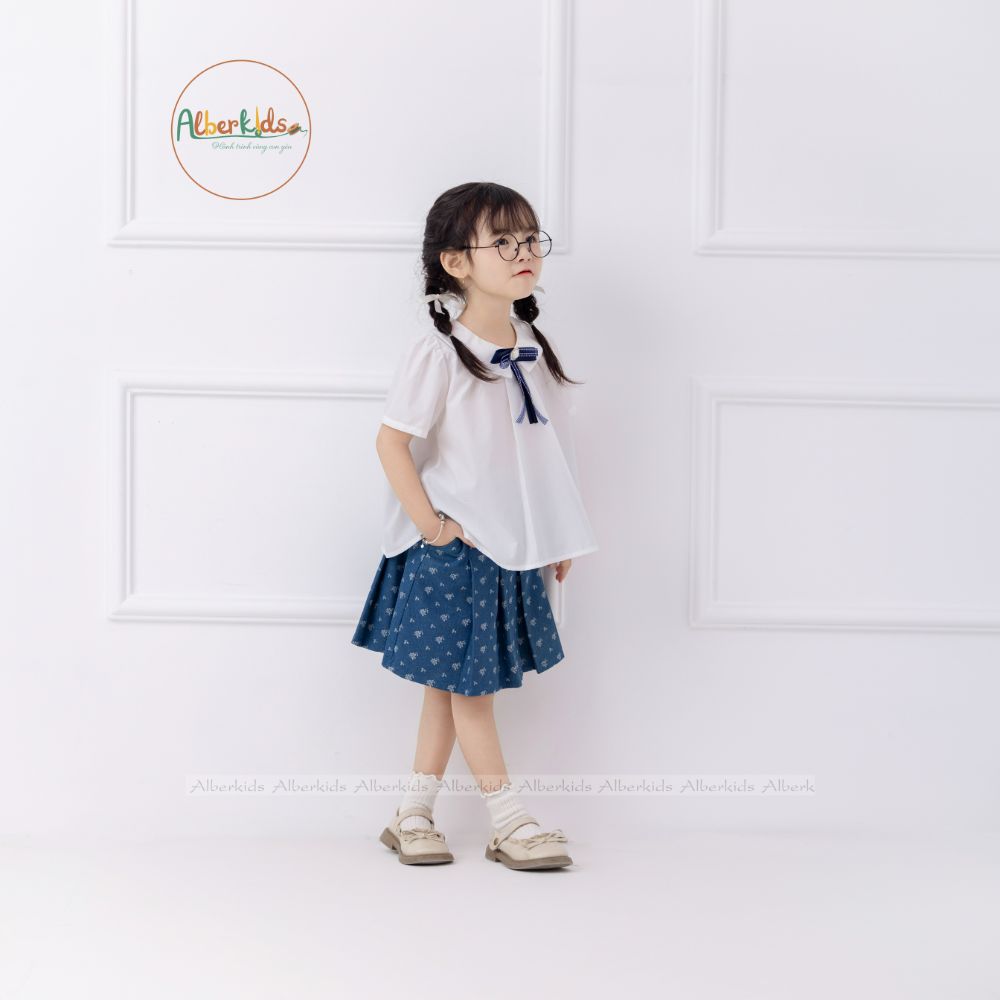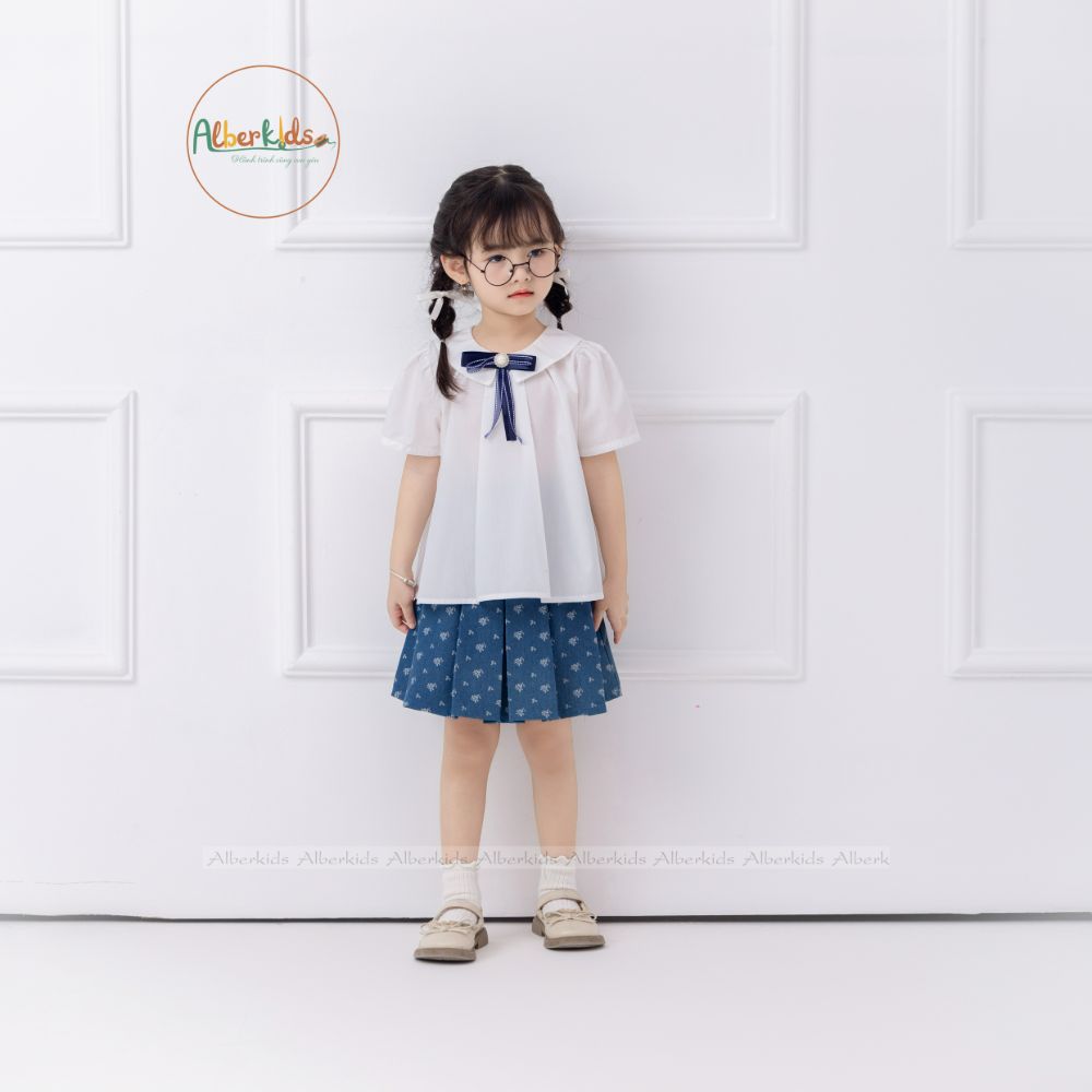 AlberKids - Hành trình cùng con yêu - Áo sơ mi trắng cổ sen kèm nơ ngọc A0734