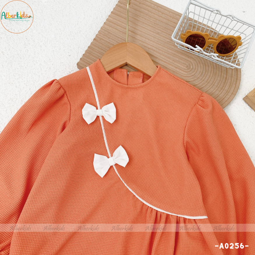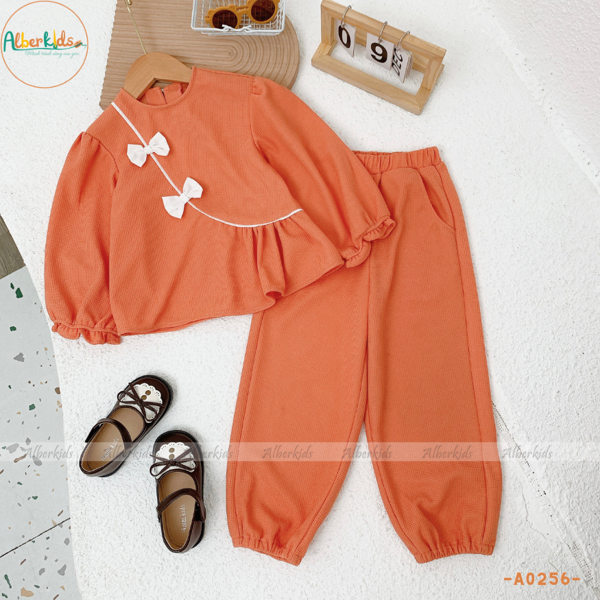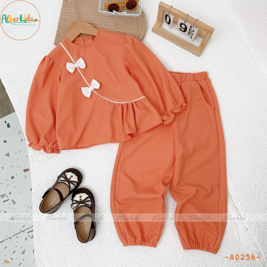 AlberKids - Hành trình cùng con yêu - Bộ đồ bé gái dài tay vạt chéo nơ cổ tròn A0256