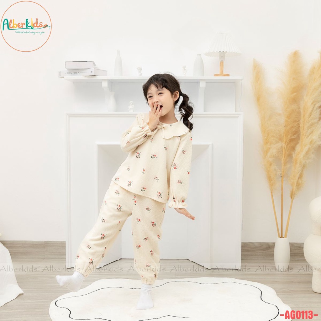 AlberKids - Hành trình cùng con yêu - Bộ đồ bé gái ALBER KIDS dài tay cổ cánh sen cotton in hoạ tiết xinh đẹp cho trẻ em 2,3,4,5,6,7,8,9,10,11,12 tuổi AG0113