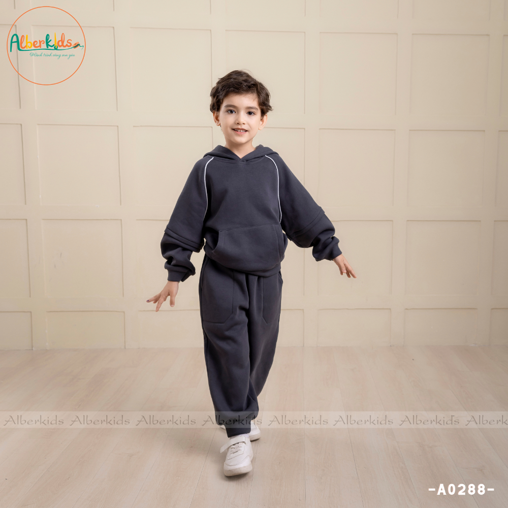 Bộ đồ nỉ bé trai có mũ phối né trắng 2,3,4,5,6,7,8,9,10,11,12 tuổi [A0288]