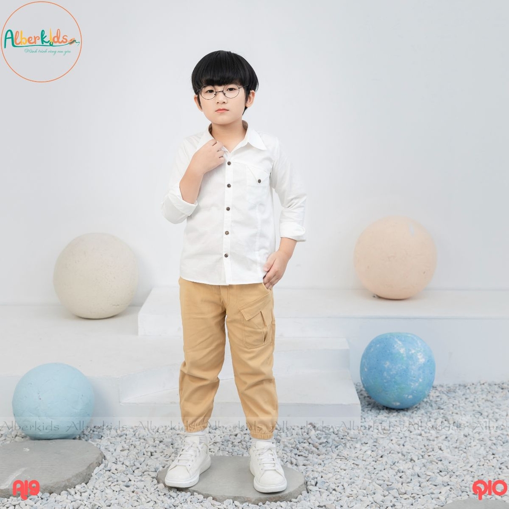 AlberKids - Hành trình cùng con yêu -Quần dài bé trai màu be túi hộp Q10