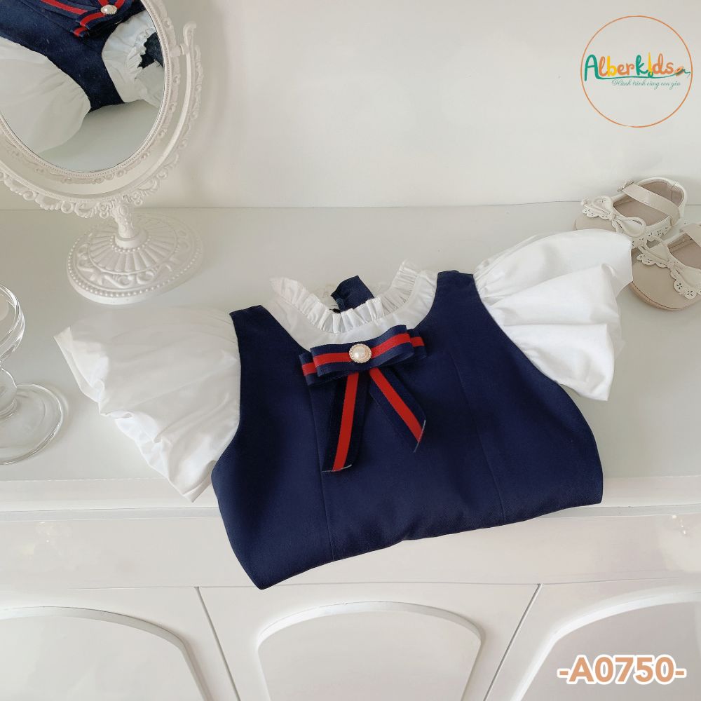 AlberKids - Hành trình cùng con yêu - Váy bé gái phối tay trắng A0750